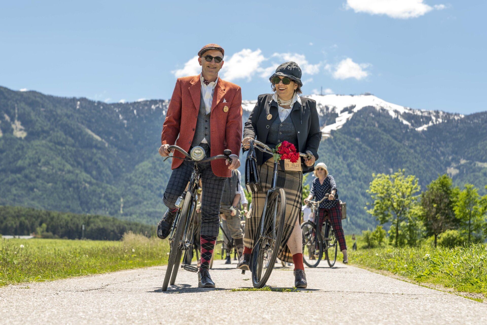 Auf unseren blumengeschmückten Oldtimer-Fahrrädern (Baujahr vor 1980!) und im entsprechenden Outfit erkunden wir die schöne Stadt Bozen. Die Gesamtlänge der Radtour beträgt ca. 14 km, unterwegs genießen wir ein kleines Frühstück, einen Aperitif und einen Mittagsimbiss.
